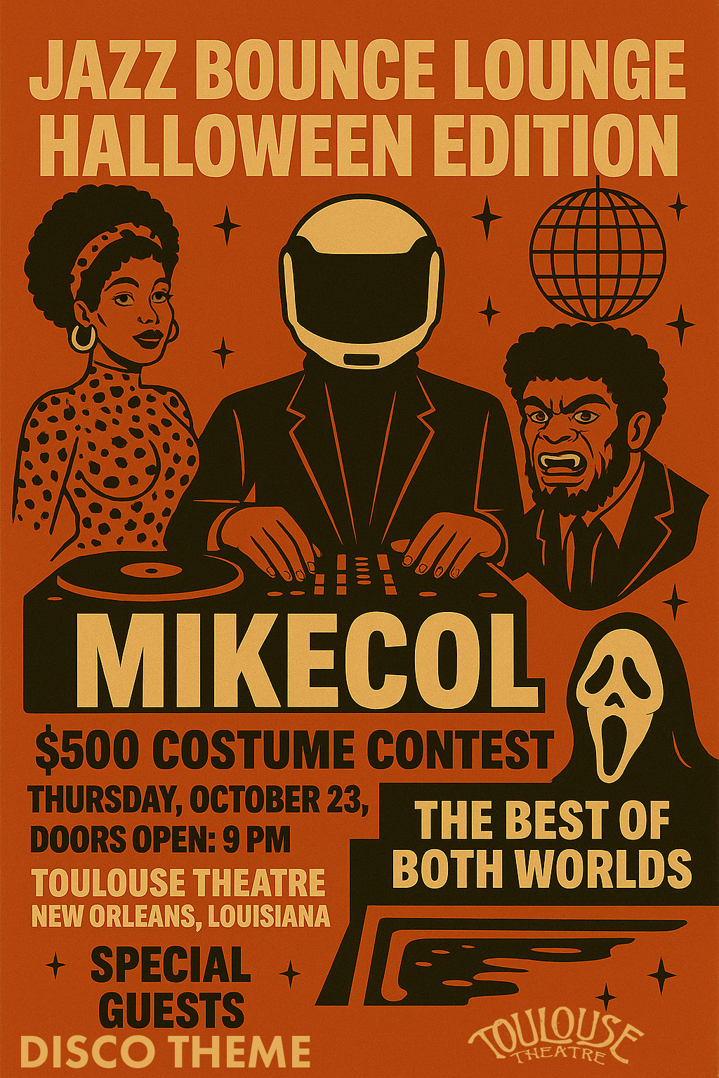 Think disco Halloween party. Dress your best and throw in a 70s flair.